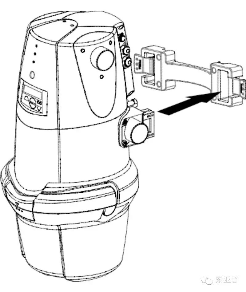 c) 安装架上的螺底丝将主机拧到墙上,安装架距1.2cm,以便将来卸集尘罐更容易。为了保证电机的正常冷却,在主机和天花板之间必须有30cm的空间。